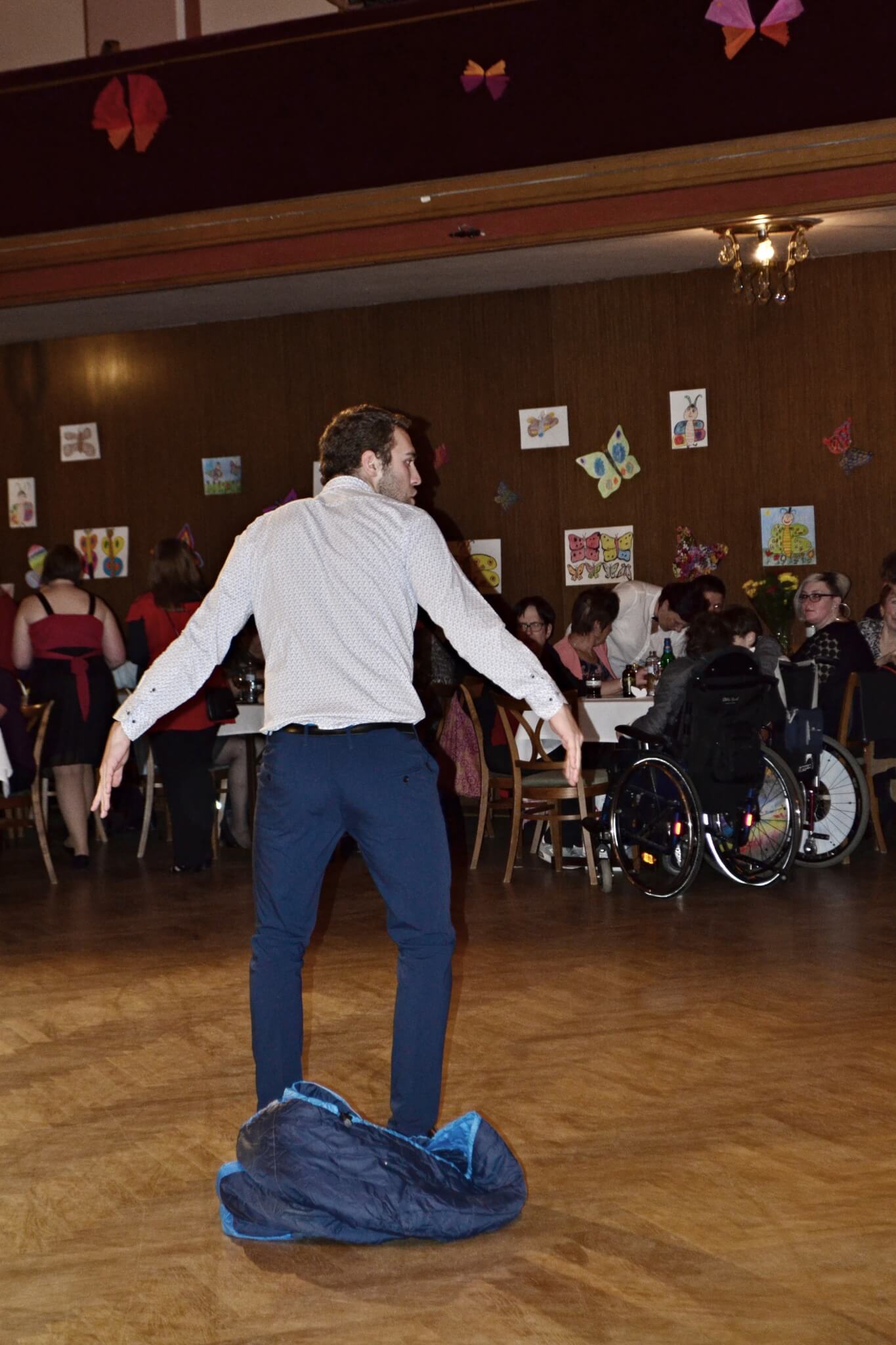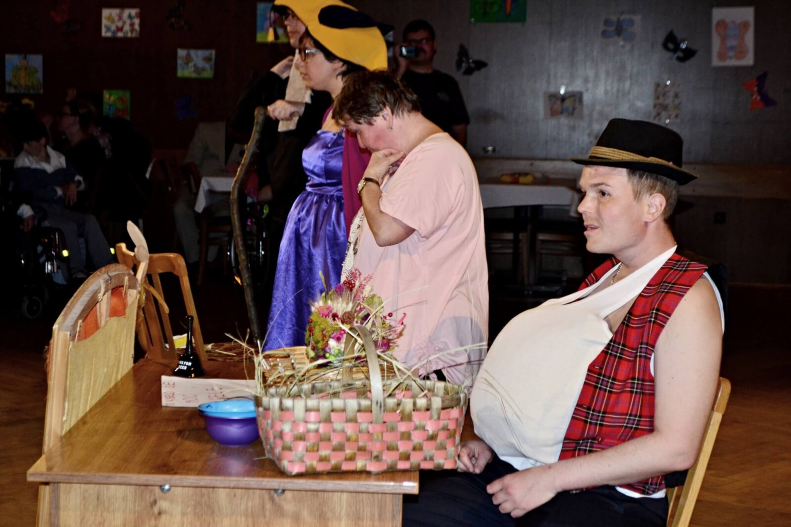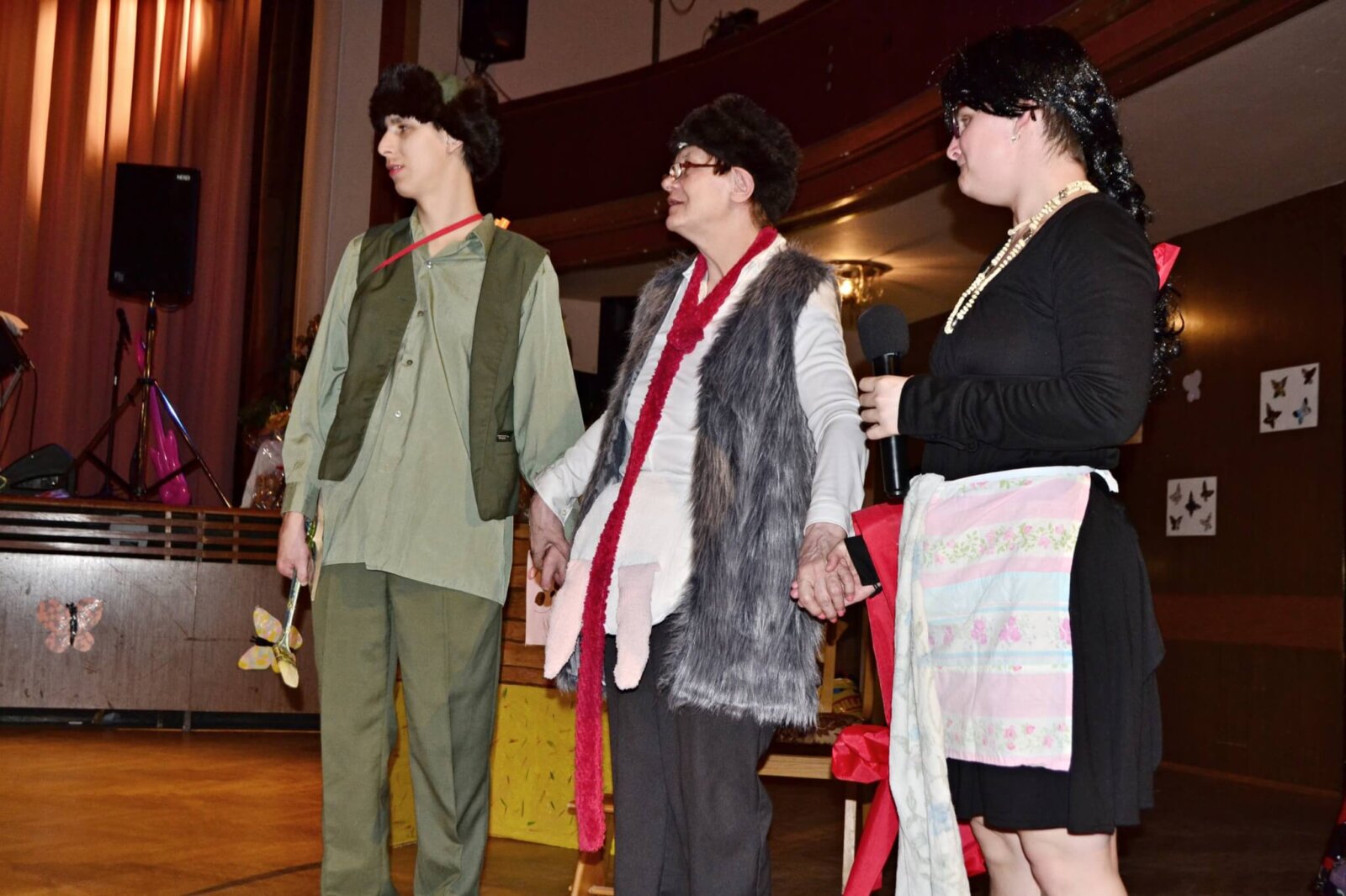 Po úvodní hudbě hosty přivítala ředitelka Drahomíra Blažková. Následovalo poděkování dlouhodobým podporovatelům naší organizace, Ing. Tomáši Drnkovi, Ing. Vladimíru Noskovi a Tomáši Fiedlerovi, který se postaral o obsah plesové tomboly. Po poděkování se návštěvníci mohli pokochat krásným pomádovým předtančením taneční skupiny Správná pětka a divadelním představením uživatelů chráněného bydlení, které nás zavedlo za Krakonošem a Trautembergem.